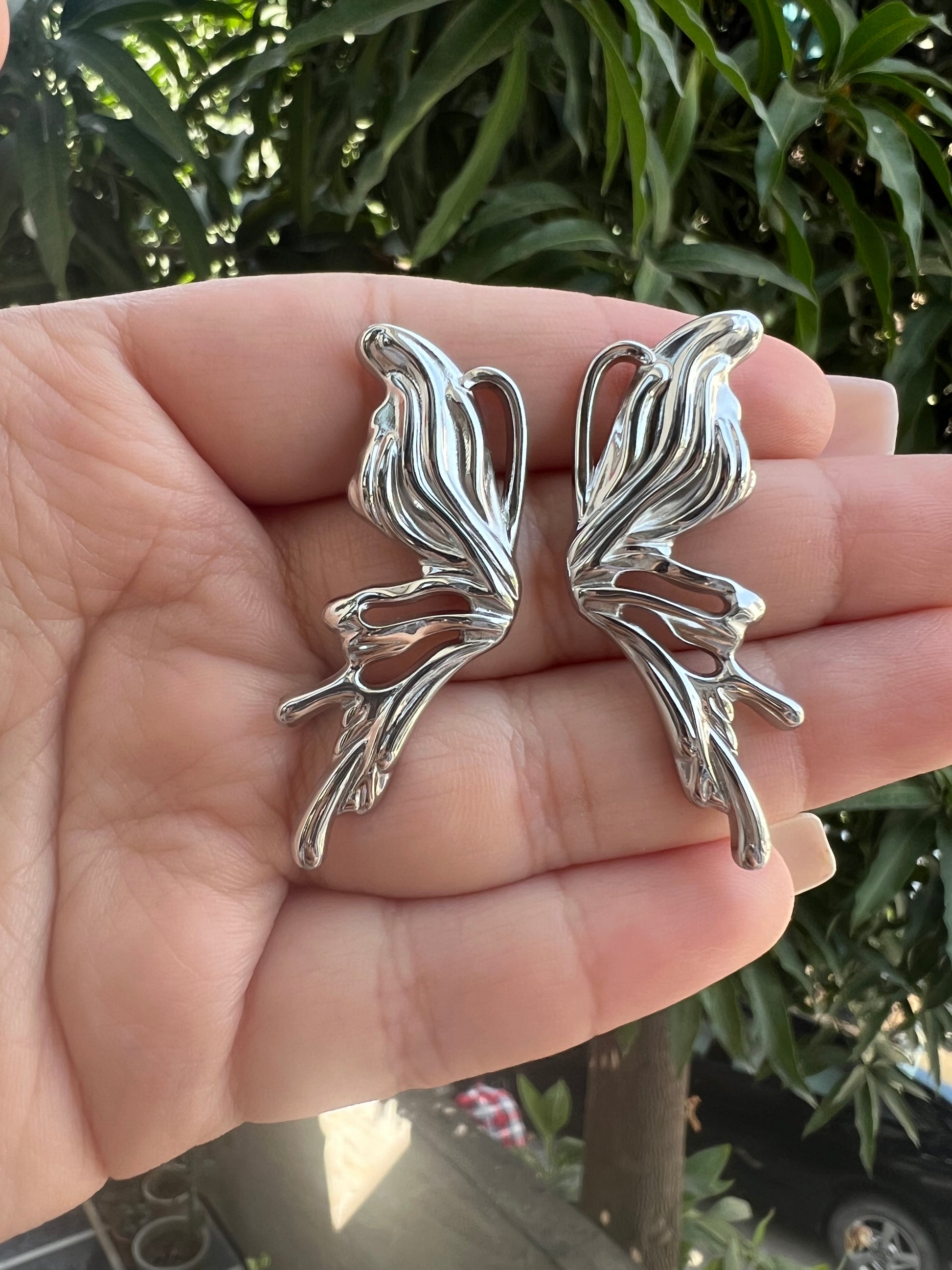 These silver butterfly earrings combine a durable stainless steel base with elegant white gold plating, providing superior waterproof and anti-tarnish protection. Crafted for longevity and effortless wear, they maintain their radiant shine while offering resilience against everyday elements. Ideal for those seeking refined style with lasting quality.